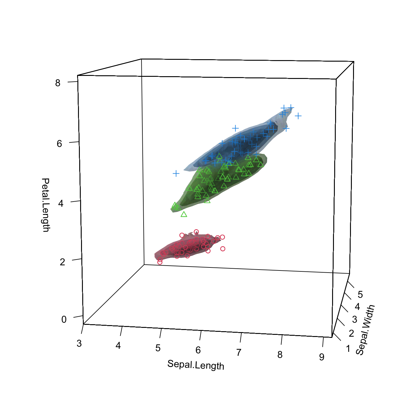 Once we are able to adequately estimate the multivariate density \(f\) of a random vector \(\mathbf{X}\) by \(\hat{f}(\cdot;\mathbf{H}),\) we can perform a series of interesting applications that go beyond the mere visualization and graphical description of the estimated density. These applications are intimately related to multivariate analysis methods rooted in the normality assumption: