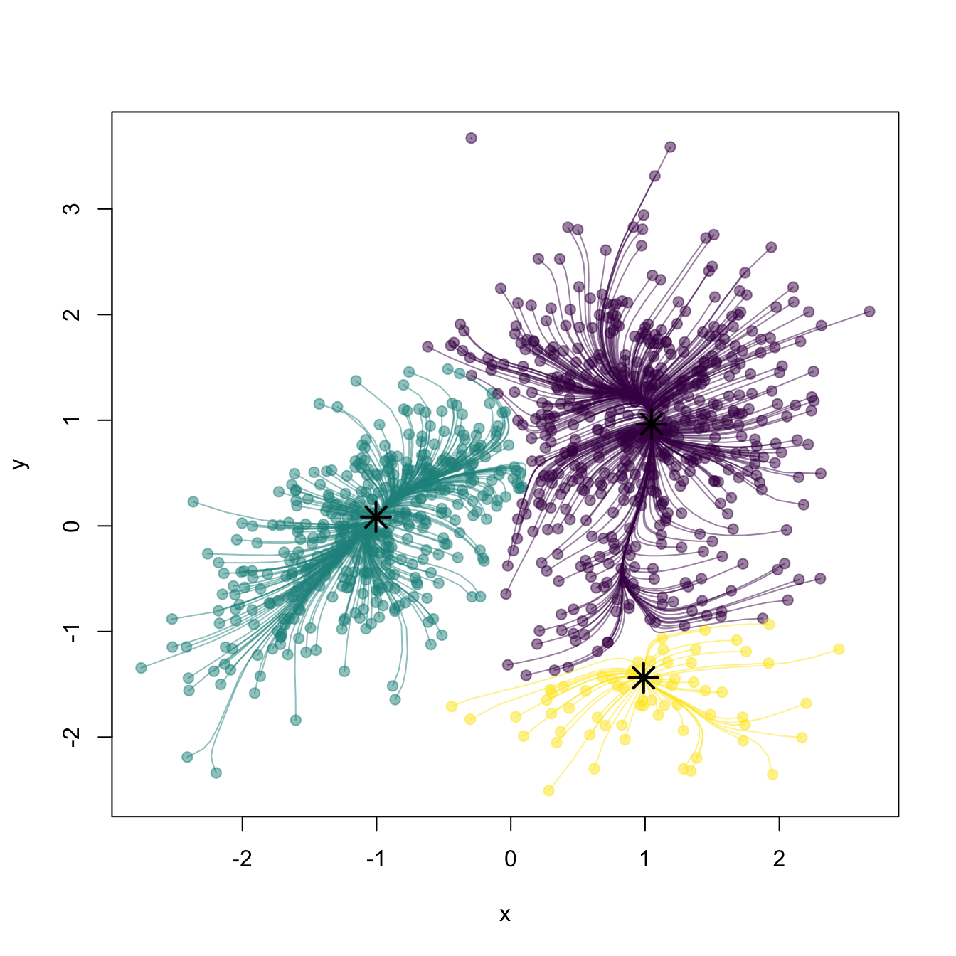 Which can be seen as a special case of fitting a mixture of \(k\) normals with isotropic covariance matrices \(\boldsymbol{\Sigma}=c\mathbf{I}_p,\) \(c>0.\)↩︎